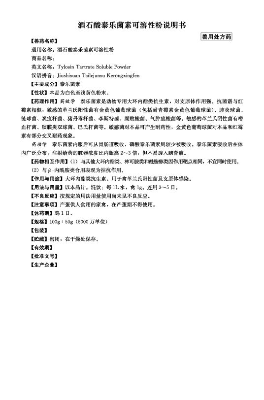 用于巴氏桿菌和大腸桿菌所致的細菌性疾病。