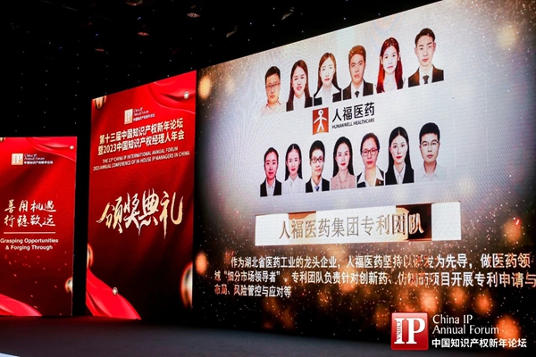 ?2月11日,“第十三屆中國知識產(chǎn)權(quán)新年論壇暨2023中國知識產(chǎn)權(quán)經(jīng)理人年會”及頒獎盛典在北京召開。本屆活動以“善用機遇 行穩(wěn)致遠(yuǎn)”為主題,全球知識產(chǎn)權(quán)行業(yè)大咖、政府代表、知名法官、專家學(xué)者及企業(yè)知識產(chǎn)權(quán)經(jīng)理人等參加盛會。在頒獎盛典上,人福醫(yī)藥集團(tuán)專利團(tuán)隊獲評“2022年度中國杰出企業(yè)知識產(chǎn)權(quán)管理團(tuán)隊”,知識產(chǎn)權(quán)經(jīng)理劉哲獲評“2022年度中國杰出知識產(chǎn)權(quán)經(jīng)理人/優(yōu)秀獎”。