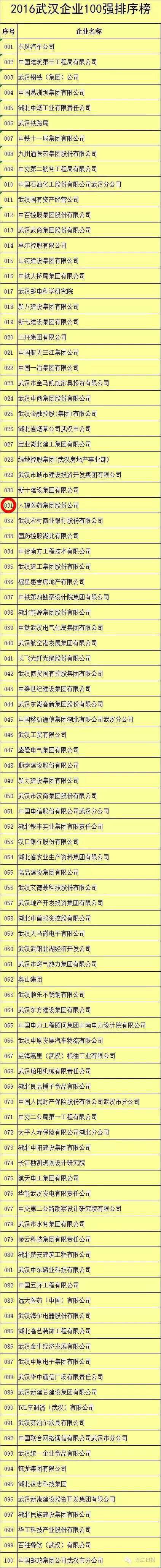 ??8月31日,2016年武漢企業(yè)100強(qiáng)榜單揭曉,人福醫(yī)藥集團(tuán)排名第31位,較上年度排序上升7個(gè)位次。該榜單由武漢企業(yè)聯(lián)合會(huì)、武漢市工商聯(lián)、武漢企業(yè)家協(xié)會(huì)主辦,按照2015年度營(yíng)業(yè)收入進(jìn)行排序。