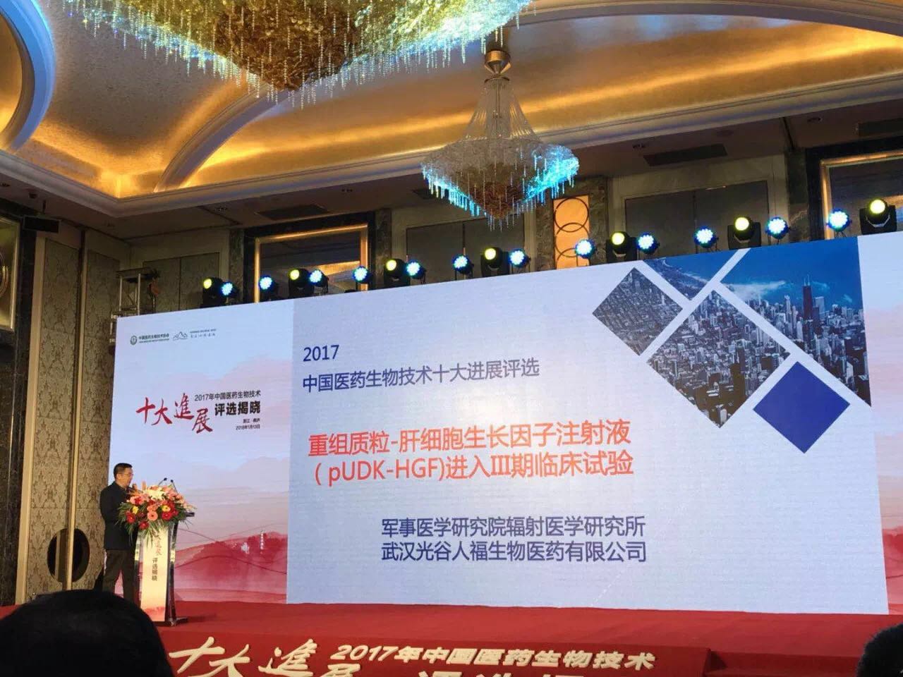 ? ? ? ? ?1月13日,由中國醫(yī)藥生物技術(shù)協(xié)會和《中國醫(yī)藥生物技術(shù)》雜志社共同主辦的“2017年中國醫(yī)藥生物技術(shù)十大進展評選揭曉”活動在浙江桐廬舉行,人福醫(yī)藥集團的“重組質(zhì)粒-肝細胞生長因子注射液進入Ⅲ期臨床”項目最終入選。出席本次活動的嘉賓有評選專家團代表魏于全院士、程京院士,主辦和承辦單位的領(lǐng)導(dǎo)、投資人和企業(yè)家、中央及地方十余家媒體記者。