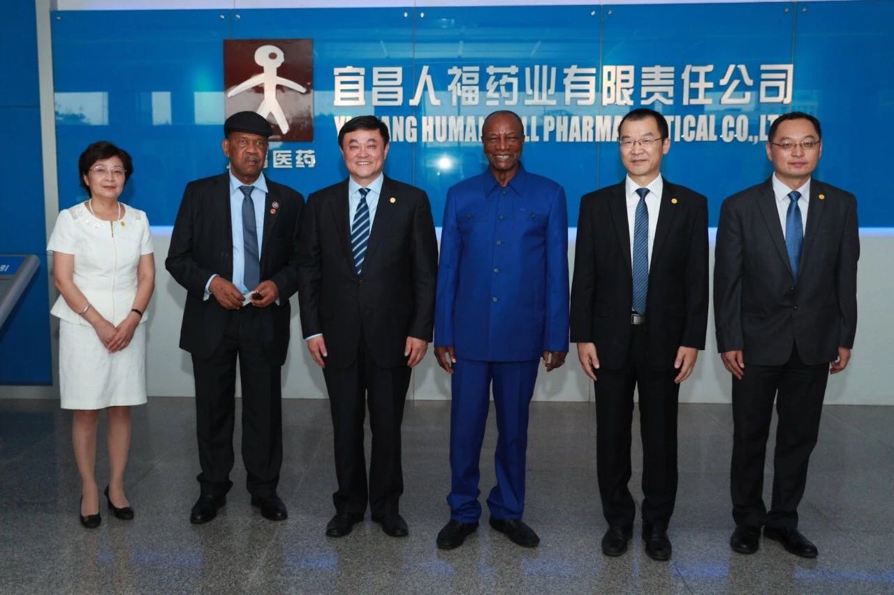 9月5日下午15時,幾內亞共和國總統阿爾法·孔戴率代表團抵達宜昌人福藥業公司,開始為期兩天的訪鄂行程。這是中非合作論壇北京峰會后,首個訪鄂的非洲代表團,孔戴總統也是繼博茨瓦納總統后第二位到訪人福的非洲國家元首。