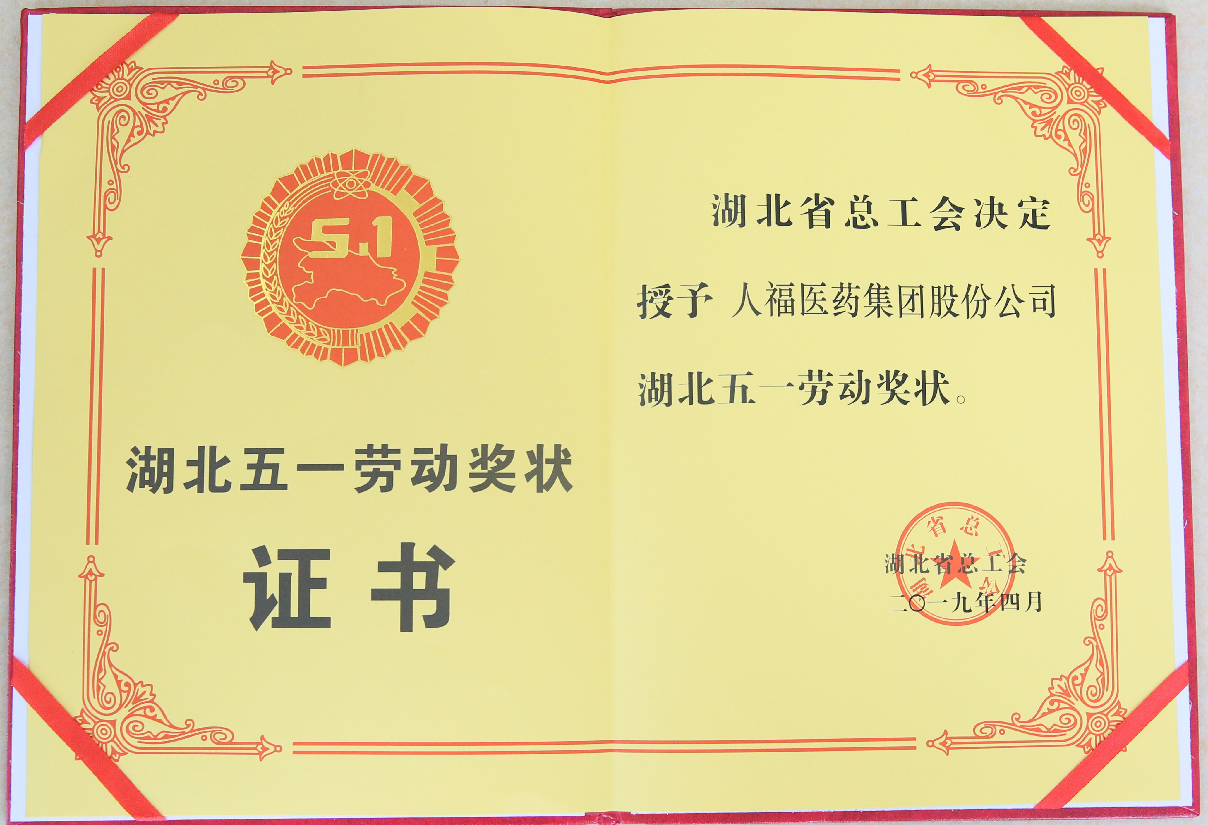 ? ? ? ? ? ? ??4月24日上午,湖北省慶祝“五一”國際勞動節暨表彰大會在洪山禮堂舉行,宣讀了《湖北省總工會關于表彰2019年湖北五一勞動獎和湖北省工人先鋒號的決定》,并向獲獎的先進集體和先進個人代表頒獎。人福醫藥集團榮獲“湖北五一勞動獎狀”。