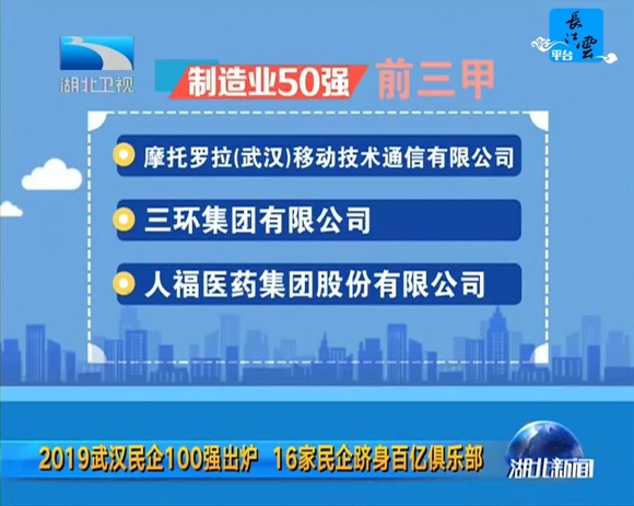 ? ? ? ?7月29日,2019武漢民營(yíng)企業(yè)100強(qiáng)、武漢民營(yíng)制造業(yè)企業(yè)50強(qiáng)排行榜正式發(fā)布。人福醫(yī)藥集團(tuán)再次入圍,榮膺武漢民營(yíng)企業(yè)100強(qiáng)第14位、武漢民營(yíng)制造業(yè)企業(yè)50強(qiáng)第3名。