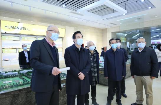 2月25日,省政協主席黃楚平、省政協秘書長翟天山一行深入人福醫藥集團,圍繞貫徹落實近期省委重要會議和省兩會精神進行調研,并為住鄂全國政協委員參加全國兩會做準備。黃楚平勉勵委員增強使命意識,立足崗位、發揮優勢、擔當盡責,做合格的人民政協制度參與者、實踐者、推動者,為我省開局“十四五”、開啟新征程貢獻智慧力量。當代集團黨委書記、董事長、人福醫藥集團創始人艾路明,全國人大代表、民建湖北省副主委、當代集團董事、人福醫藥集團董事周漢生,省政協常委、農工黨湖北省委會副主委、人福醫藥集團總裁鄧霞飛陪同調研。