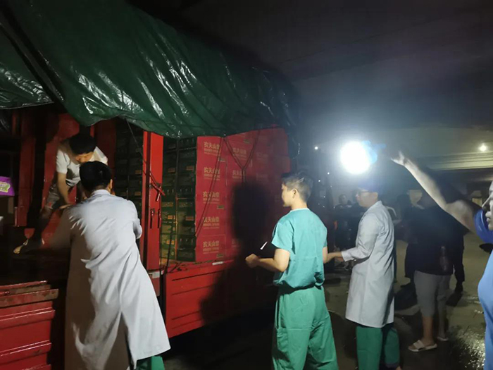 7月21日,宜昌人福藥業首先安排駐地員工為河南省人民醫院、鄭州大學第一附屬醫院、鄭州市第一人民醫院等堅持在崗的ICU醫生送去幾百件生活急需物資。