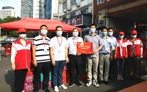 一個多星期以來,該小區(qū)醫(yī)護(hù)人員和工作人員一直堅(jiān)守一線,經(jīng)受著酷暑和物資短缺的多重考驗(yàn)。在得知小區(qū)急需防疫物資和降暑等生活物資后,人福醫(yī)藥集團(tuán)積極組織采購了12000只口罩、100公斤消殺酒精、50箱純凈水、50箱方便面,緊急送到社區(qū)工作人員手中。