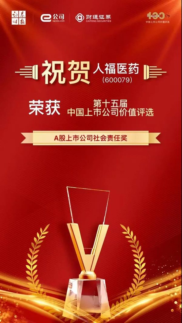 ? ? ? ?9月28日,由證券時報社主辦、財通證券特約協辦的“第十五屆中國上市公司價值評選”榜單揭曉,人福醫藥集團榮獲“A股上市公司社會責任獎”。