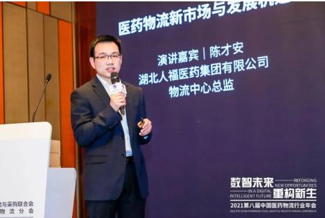 ? ? ?本屆年會由中國物流與采購聯(lián)合會主辦,以“數(shù)智未來,重構(gòu)新生”為主題,聚焦行業(yè)發(fā)展的共性需求與問題,探討醫(yī)藥供應(yīng)鏈發(fā)展趨勢及創(chuàng)新之道,吸引了眾多醫(yī)藥生產(chǎn)企業(yè)、醫(yī)藥經(jīng)營企業(yè)、第三方物流企業(yè)、零售藥店、疾控中心、物流設(shè)備設(shè)施與信息技術(shù)服務(wù)提供商等業(yè)內(nèi)嘉賓的廣泛參與。在“醫(yī)藥供應(yīng)鏈創(chuàng)新應(yīng)用”分論壇,湖北人福物流中心總監(jiān)陳才安以《醫(yī)藥物流新市場與發(fā)展機遇》為題進行了分享。